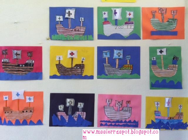 After learning about Christopher Columbus, the kids made ships to resemble the Santa Maria, La Niña, La Pinta. Their ships came out awesome! I loved them!