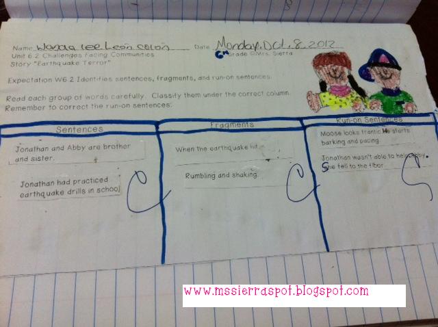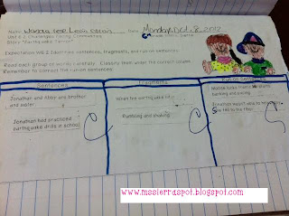 6th graders have been working on identifying sentences, fragments, and run-on sentences. They also had to correct run-on sentences. Here's an activity we did today, where they had to cut and glue group of words under the correct column.
