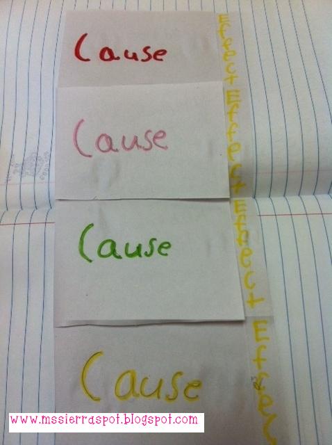 6th graders have been reading the story "Earthquake Terror" by Peg Kehret. Currently they are working on the skill Cause and Effect. Yesterday, they made a flapbook where they had to write the cause and effect.